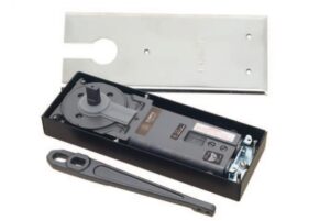 Quicio hidráulico Olimpia 832: cierrapuertas de piso para puertas de vidrio, robusto y confiable para uso intensivo.