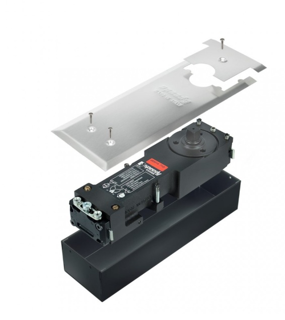 Quicio hidráulico Speedy KS3000: cierrapuertas de piso para puertas de vidrio, ideal para alto tránsito y uso diario.