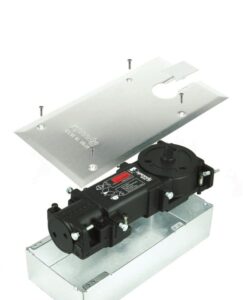 Quicio hidráulico Speedy M25: cierrapuertas de piso para puertas de vidrio, firme y confiable para uso frecuente.
